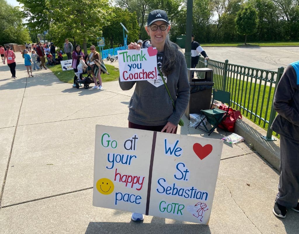 We don’t know what’s more encouraging — this sideline supporter’s kind smile or her cheerful, celebratory sign! Both warm our hearts!