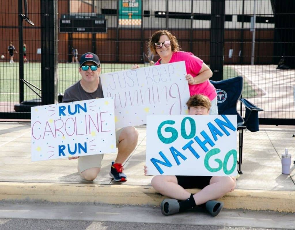 We don’t know what’s more encouraging — this sideline supporter’s kind smile or her cheerful, celebratory sign! Both warm our hearts!