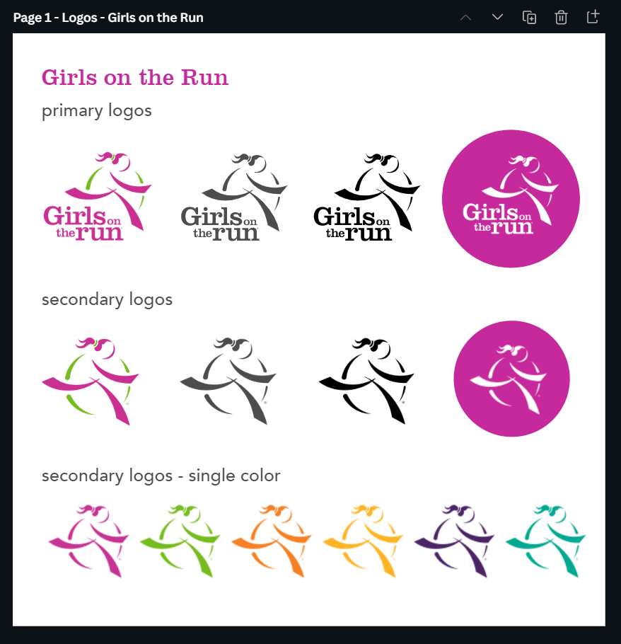 This guide outlines branding standards that are a direct reflection of Girls on the Run and the experiences a person has with the organization. Topics covered include fonts, colors, logo restrictions and more.